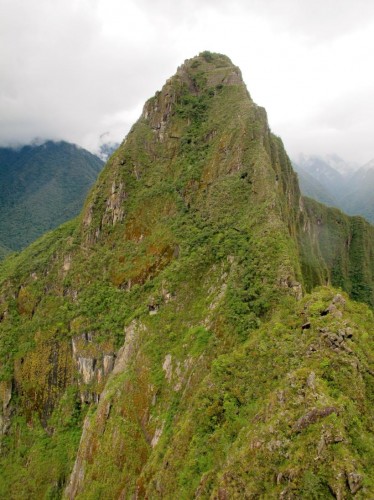 最初の写真でマチュピチュの遺跡の奥に見える急な高い山だ。